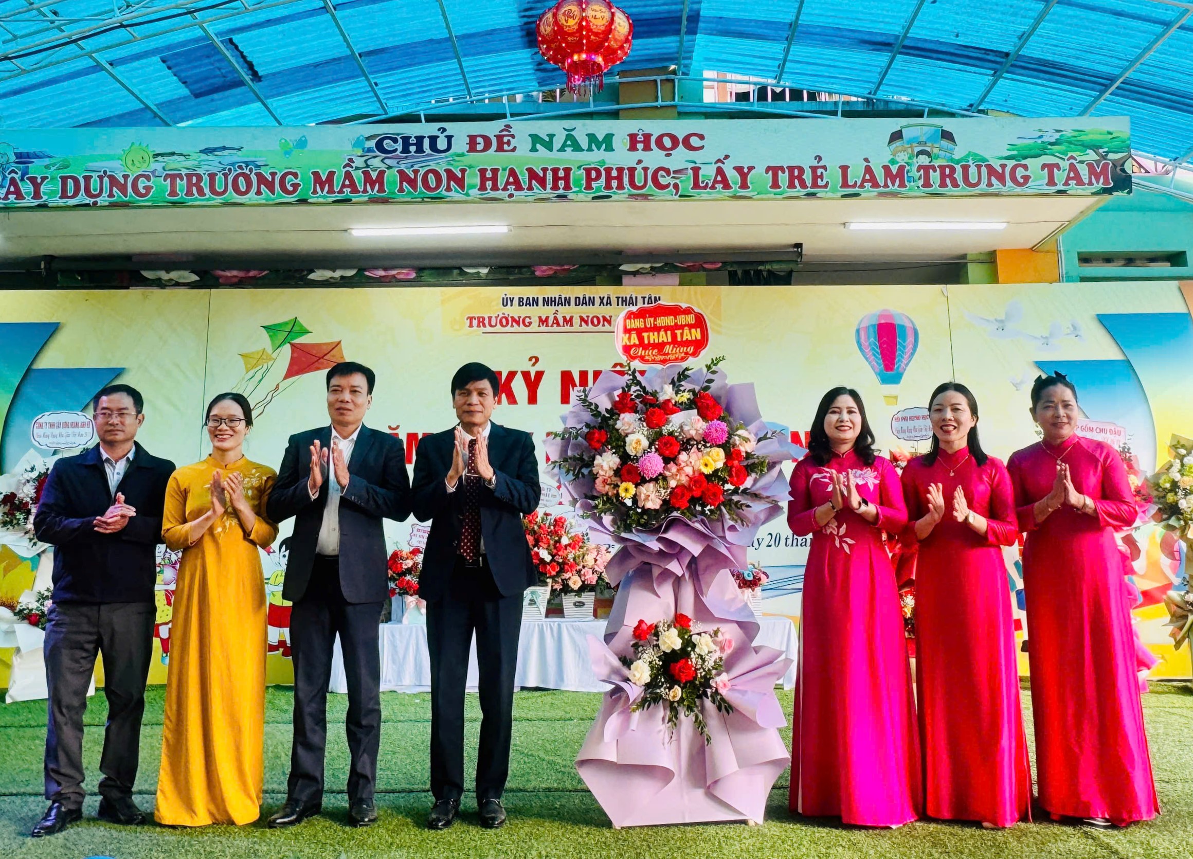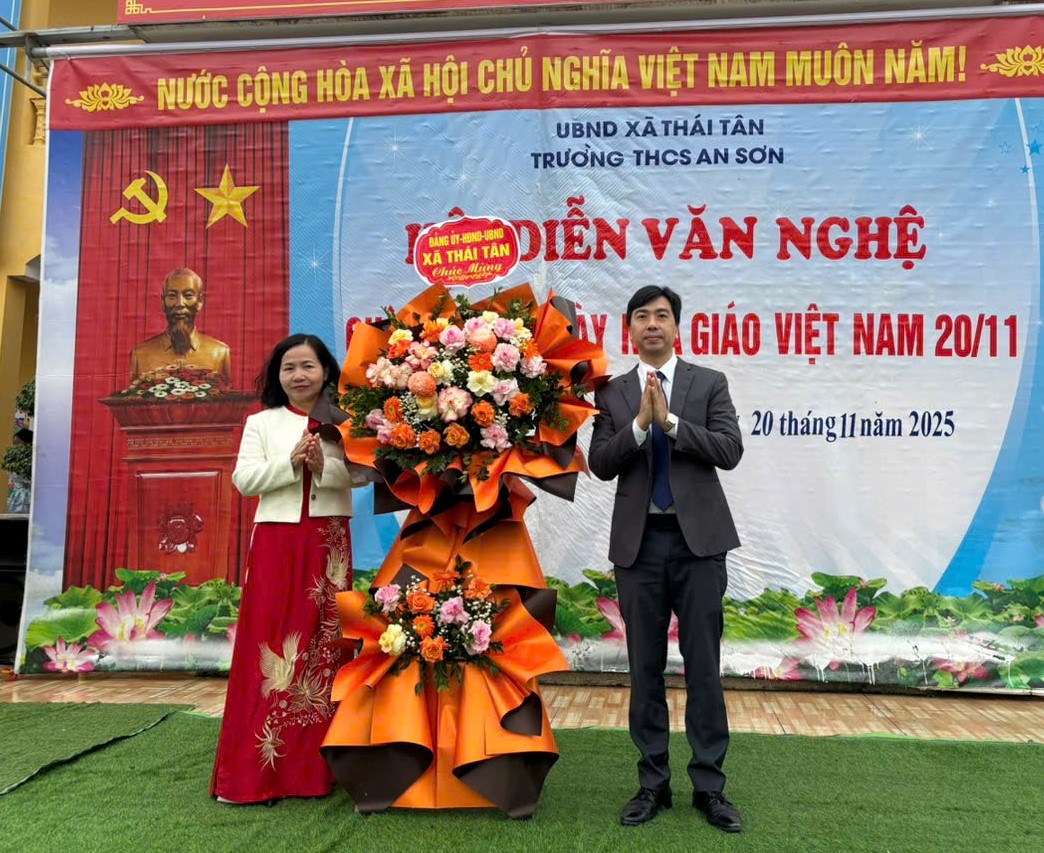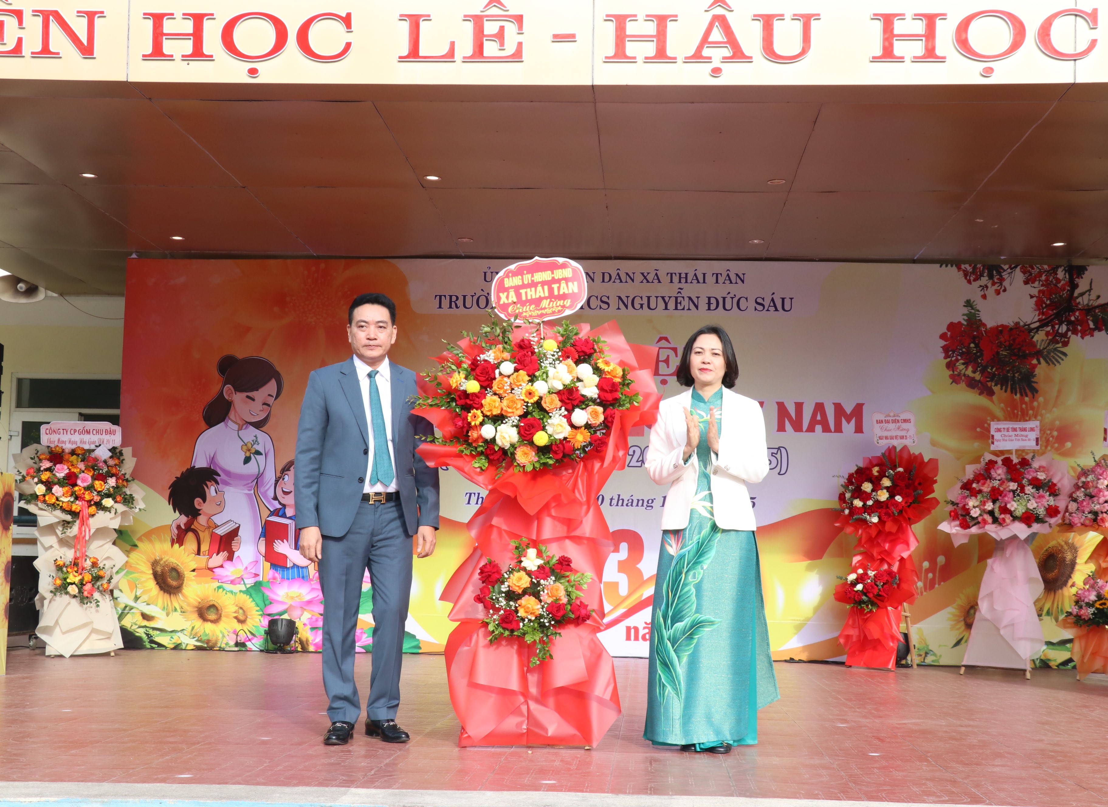 Đồng chí Nguyễn Thị Thu Hương - Bí thư Đảng uỷ, Chủ tịch HĐND xã đến dự Kỷ niệm và chúc mừng các thầy cô giáo tại các trường: Tiểu học và THCS Nguyễn Đức Sáu, Mầm Non Nguyễn Đức Sáu. Đồng chí Đặng Văn Duy - Phó Bí thư, Chủ tịch UBND xã đã đến dự Kỷ niệm và chúc mừng các thầy cô giáo các trường Mầm non, Tiểu học và THCS Thái Tân. Đồng chí Phạm Trung Dũng - Uỷ viên Ban Thường vụ, Phó Chủ tịch UBND xã đến dự Kỷ niệm và chúc mừng các thầy cô giáo trường Mầm non, Tiểu học và THCS An Sơn.
