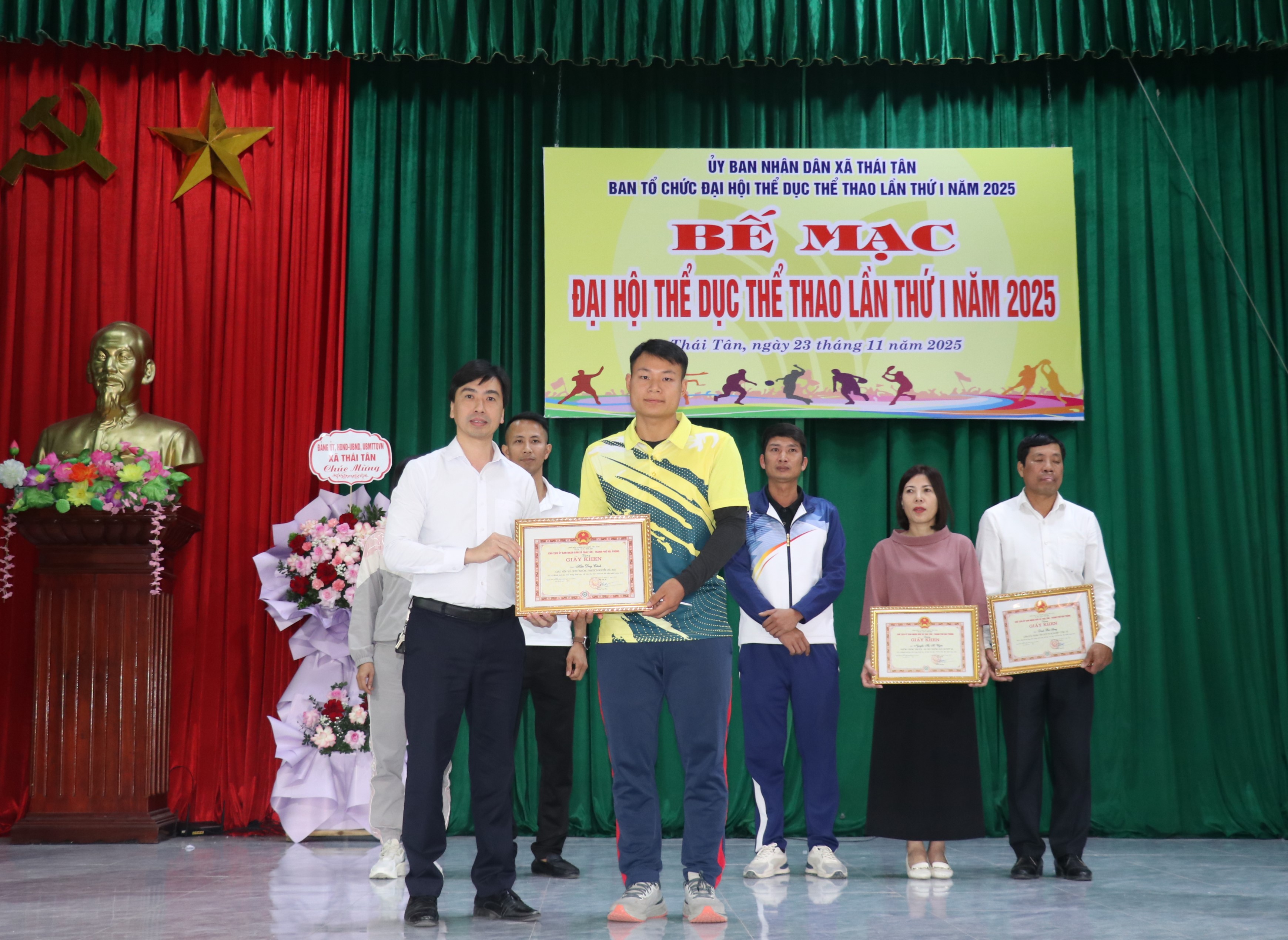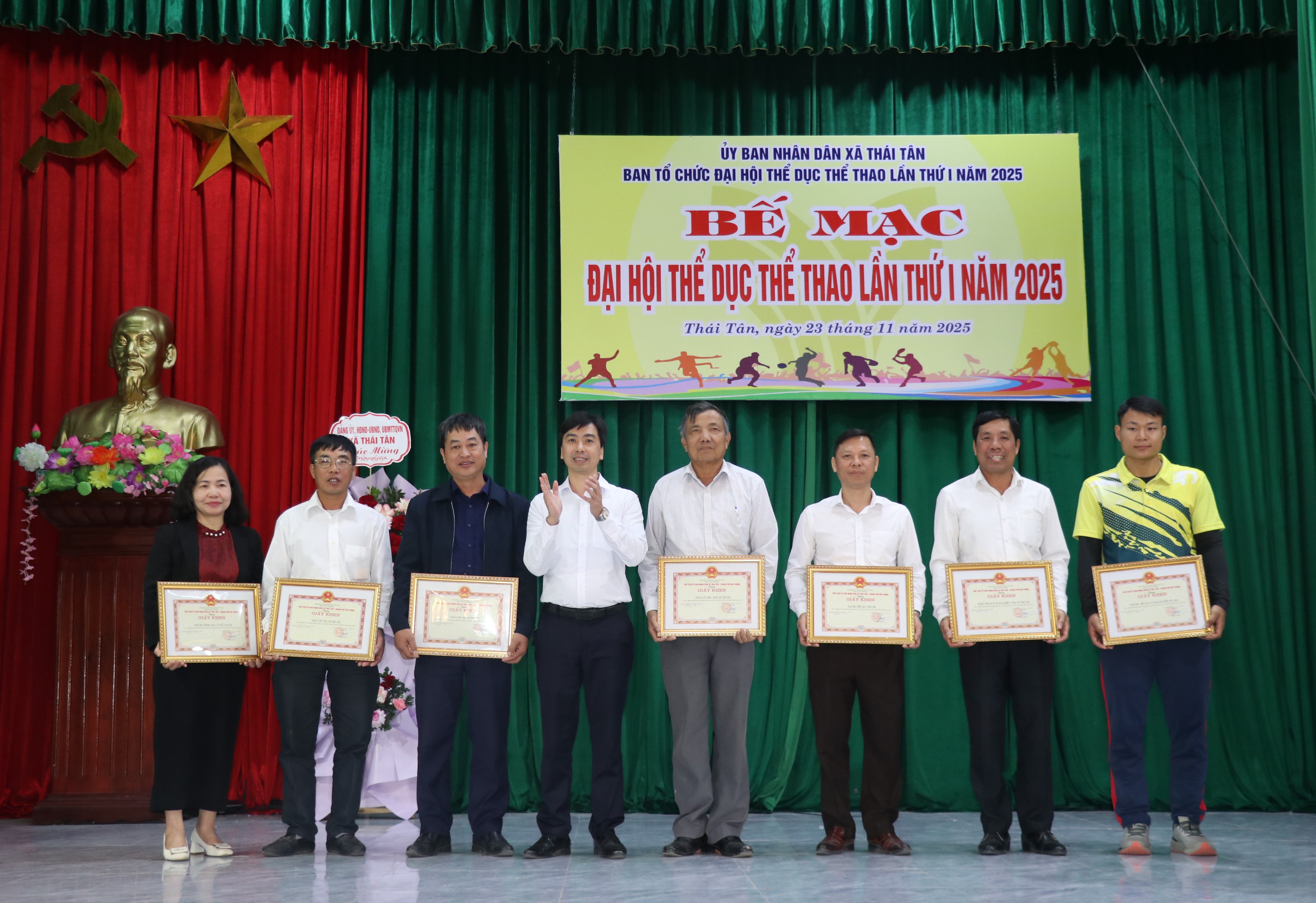 Ngay sau khi hoàn thành các nội dung thi đấu trong khuôn khổ Đại hội Thể dục Thể thao xã Thái Tân lần thứ I, năm 2025, Ban Tổ chức Đại hội đã tổ chức Lễ Bế mạc và khen thưởng các tập thể, cá nhân có thành tích tiêu biểu.