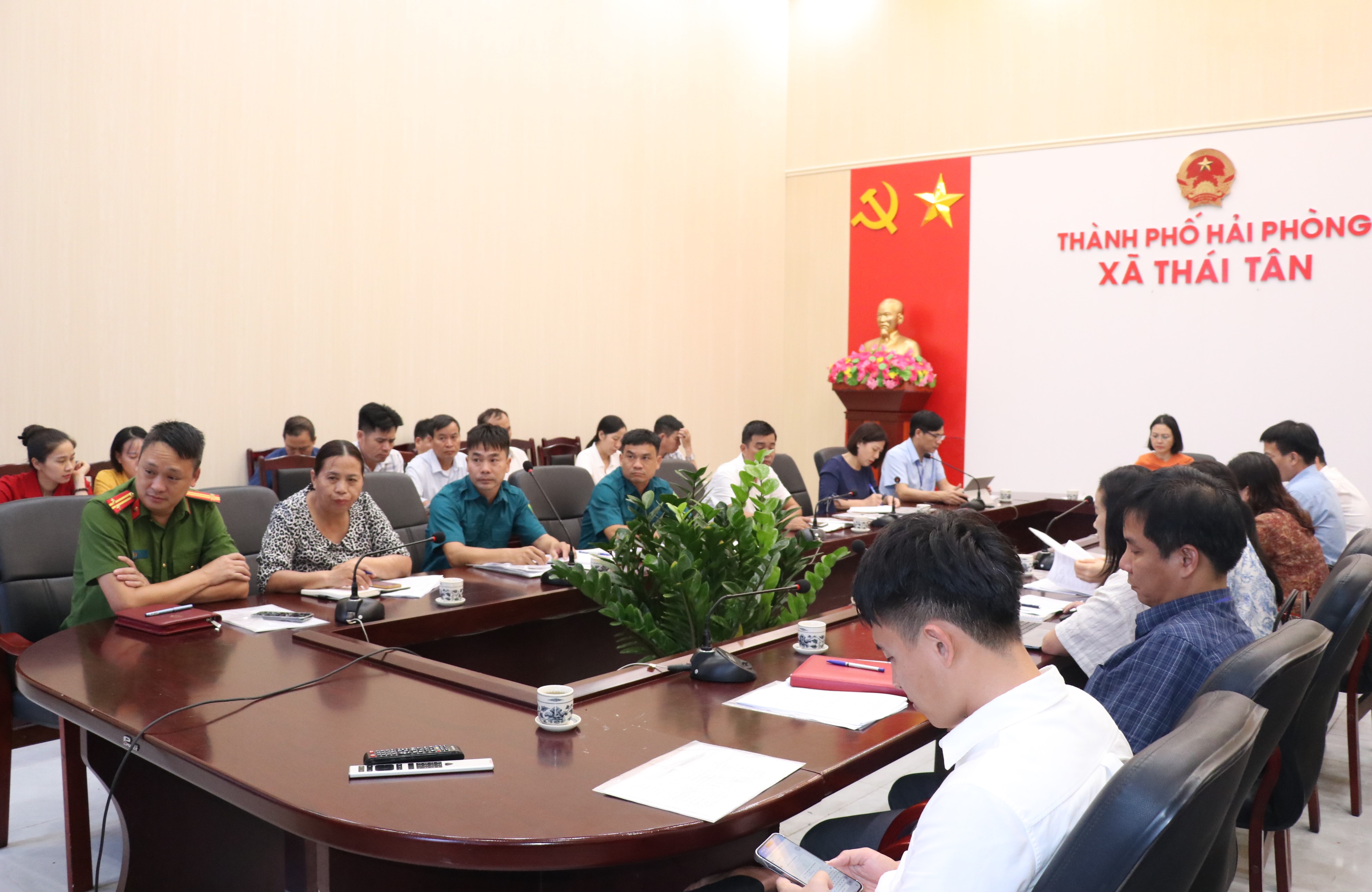 Tại điểm cầu xã Thái Tân, tham dự hội nghị có các đồng chí: Nguyễn Thị Thu Hương – Bí thư Đảng ủy, Chủ tịch HĐND xã; Mạc Lê Phi – Phó Bí thư Thường trực Đảng ủy; Đặng Văn Duy – Phó Bí thư Đảng ủy, Chủ tịch UBND xã; cùng các thành viên Hội đồng Nghĩa vụ quân sự xã.