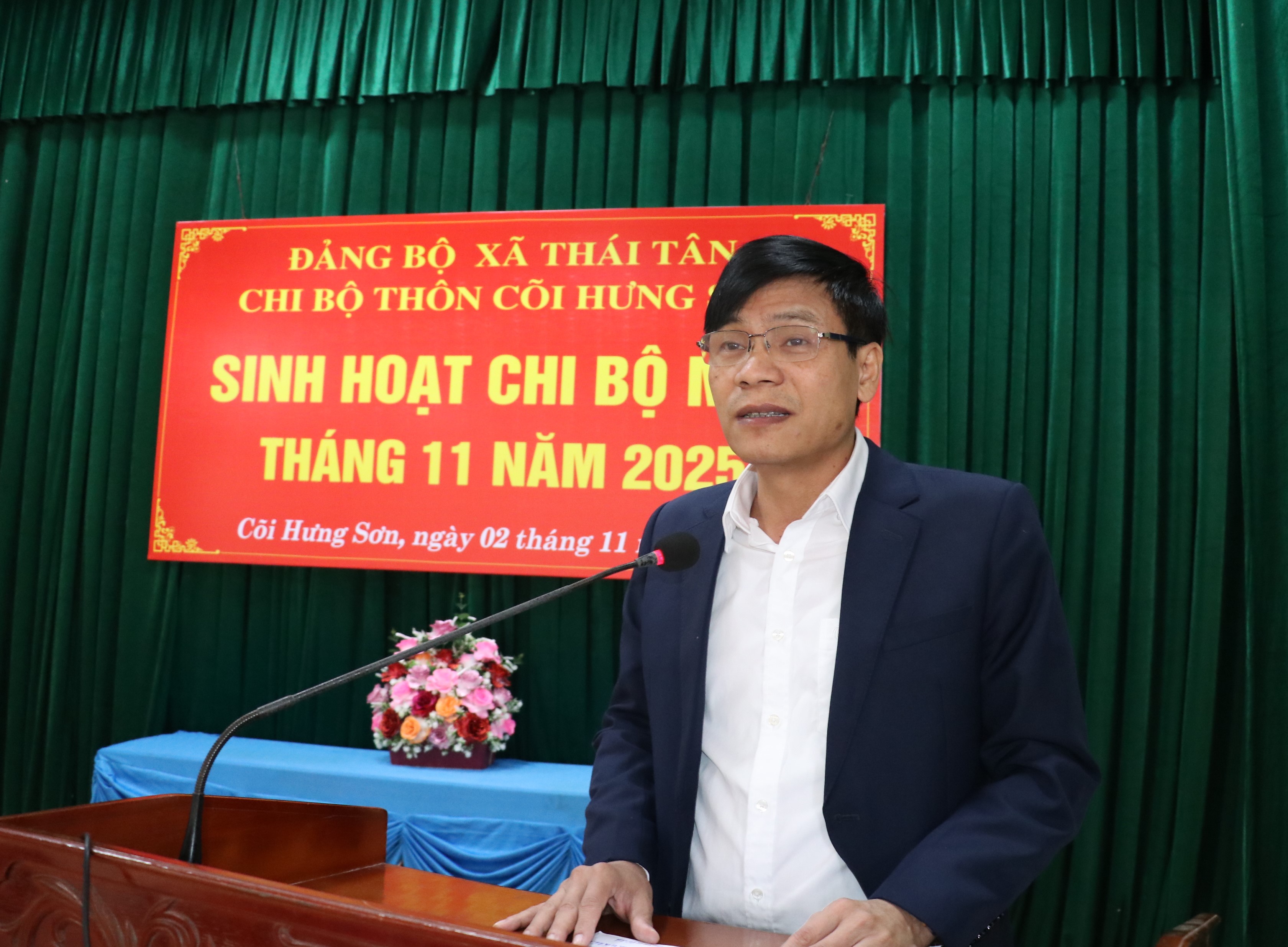 Phát biểu tại buổi sinh hoạt, đồng chí Đặng Văn Duy – Phó Bí thư, Chủ tịch UBND xã ghi nhận tinh thần đoàn kết, nền nếp sinh hoạt nghiêm túc của chi bộ thôn Cõi Hưng Sơn. Đồng chí nhấn mạnh chi bộ cần tiếp tục phát huy vai trò hạt nhân lãnh đạo ở khu dân cư; mỗi đảng viên nêu cao tính tiên phong gương mẫu, gắn bó với nhân dân, kịp thời nắm bắt tâm tư nguyện vọng và giải quyết những vấn đề phát sinh từ cơ sở.