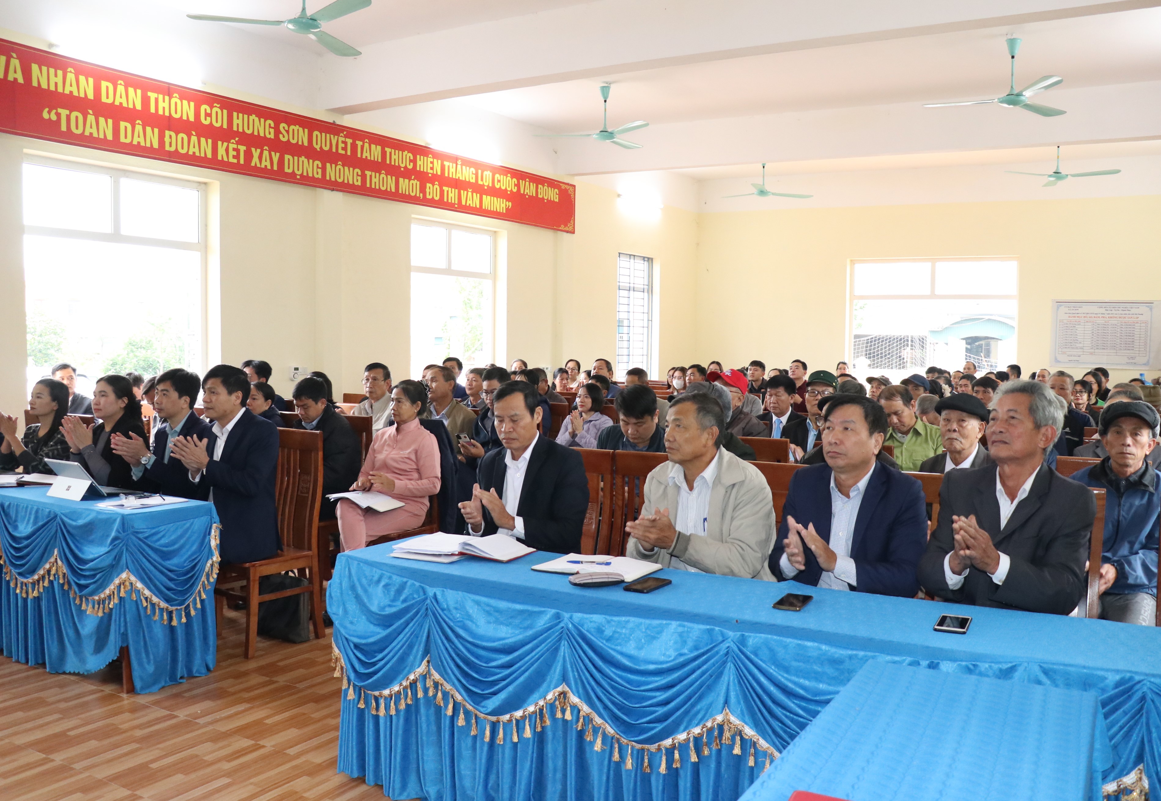 Đồng chí Đặng Văn Duy - Phó Bí thư, Chủ tịch UBND xã tới dự và phát biểu ý kiến. Cùng dự có các đồng chí trong Ban Thường vụ, Ban Chấp hành Đảng bộ xã; bí thư, phó bí thư, người ghi sổ Nghị quyết tại các chi, đảng bộ trực thuộc và toàn thể đảng viên chi bộ thôn Cõi Hưng Sơn.