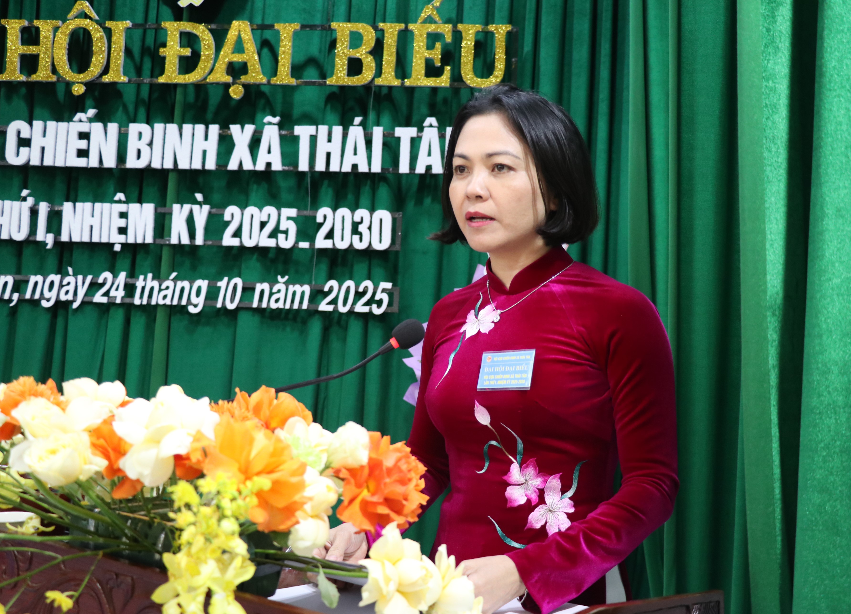 Phát biểu chỉ đạo Đại hội, đồng chí Nguyễn Thị Thu Hương – Bí thư Đảng ủy, Chủ tịch HĐND xã Thái Tân biểu dương, ghi nhận và đánh giá cao những kết quả, đóng góp của các thế hệ cựu chiến binh đối với sự phát triển của địa phương. Đồng chí đề nghị trong nhiệm kỳ tới, Hội Cựu chiến binh xã tiếp tục tăng cường giáo dục chính trị tư tưởng, giữ vững và phát huy bản chất “Bộ đội Cụ Hồ”; đẩy mạnh phong trào “Cựu chiến binh giúp nhau phát triển kinh tế”; tham gia tích cực xây dựng Đảng, chính quyền, phát huy dân chủ, củng cố khối đoàn kết toàn dân và góp phần xây dựng xã Thái Tân ngày càng giàu đẹp, văn minh.