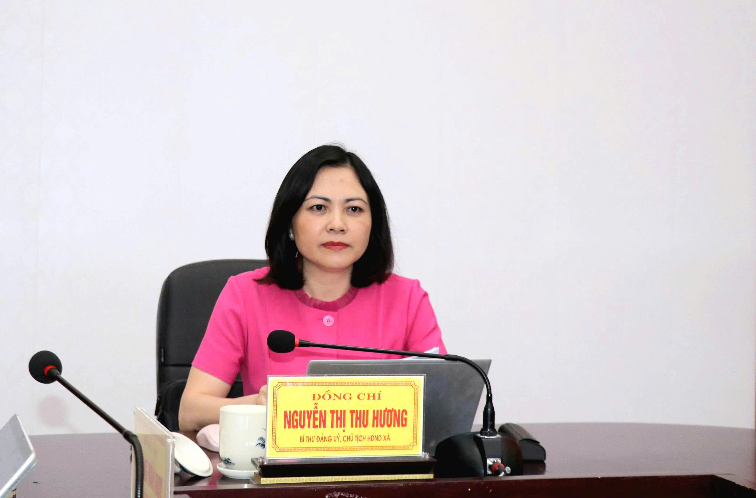 Đồng chí Nguyễn Thị Thu Hương - Bí thư Đảng ủy, Chủ tịch HĐND xã chủ trì hội nghị.