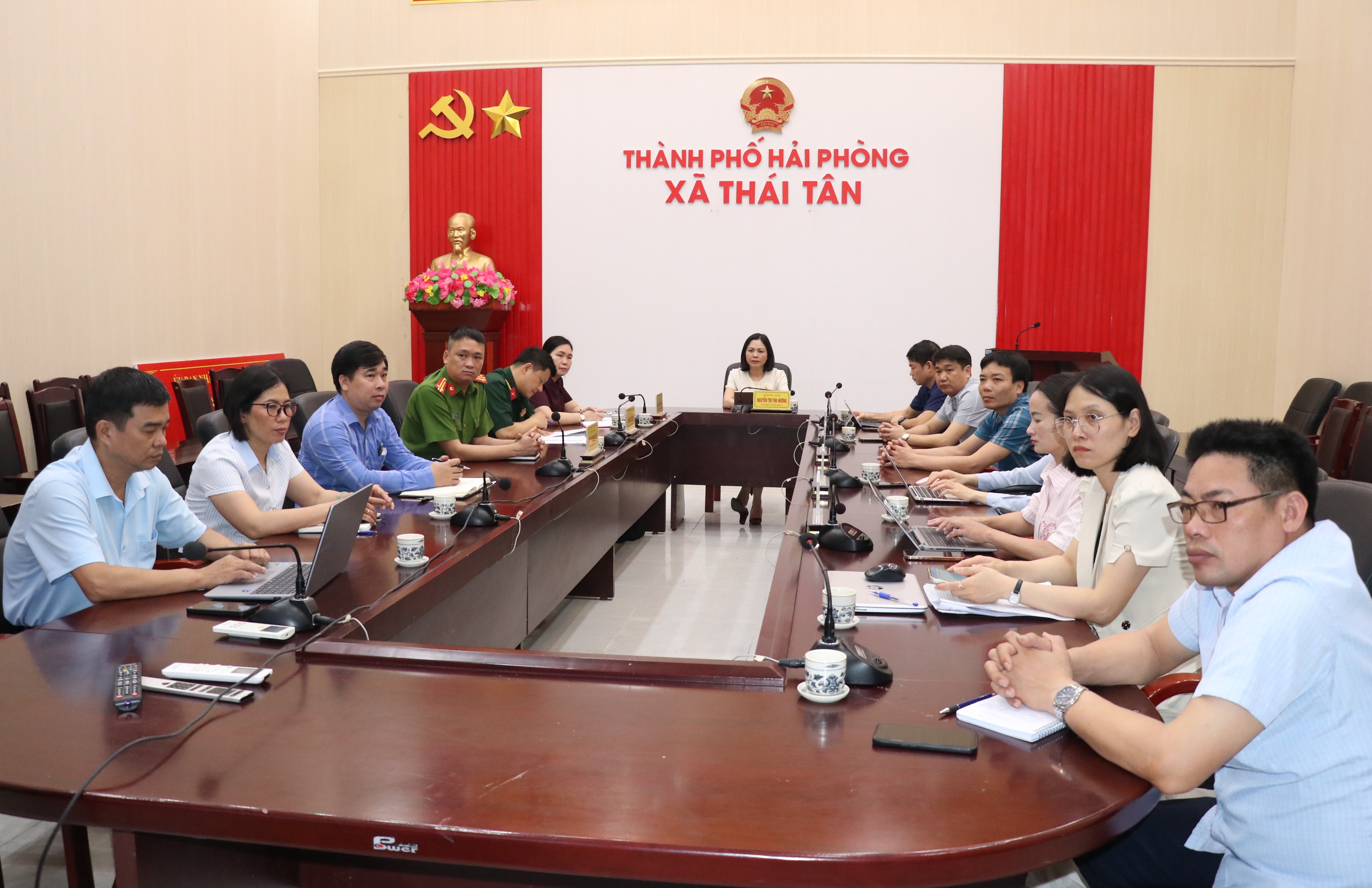 Hội nghị được tổ chức trực tiếp kết hợp trực tuyến tới các điểm cầu xã, phường, đặc khu trên địa bàn thành phố. Tại điểm cầu xã Thái Tân, đồng chí Nguyễn Thị Thu Hương chủ trì, cùng dự có các đồng chí trong Ban Thường vụ Đảng uỷ xã.