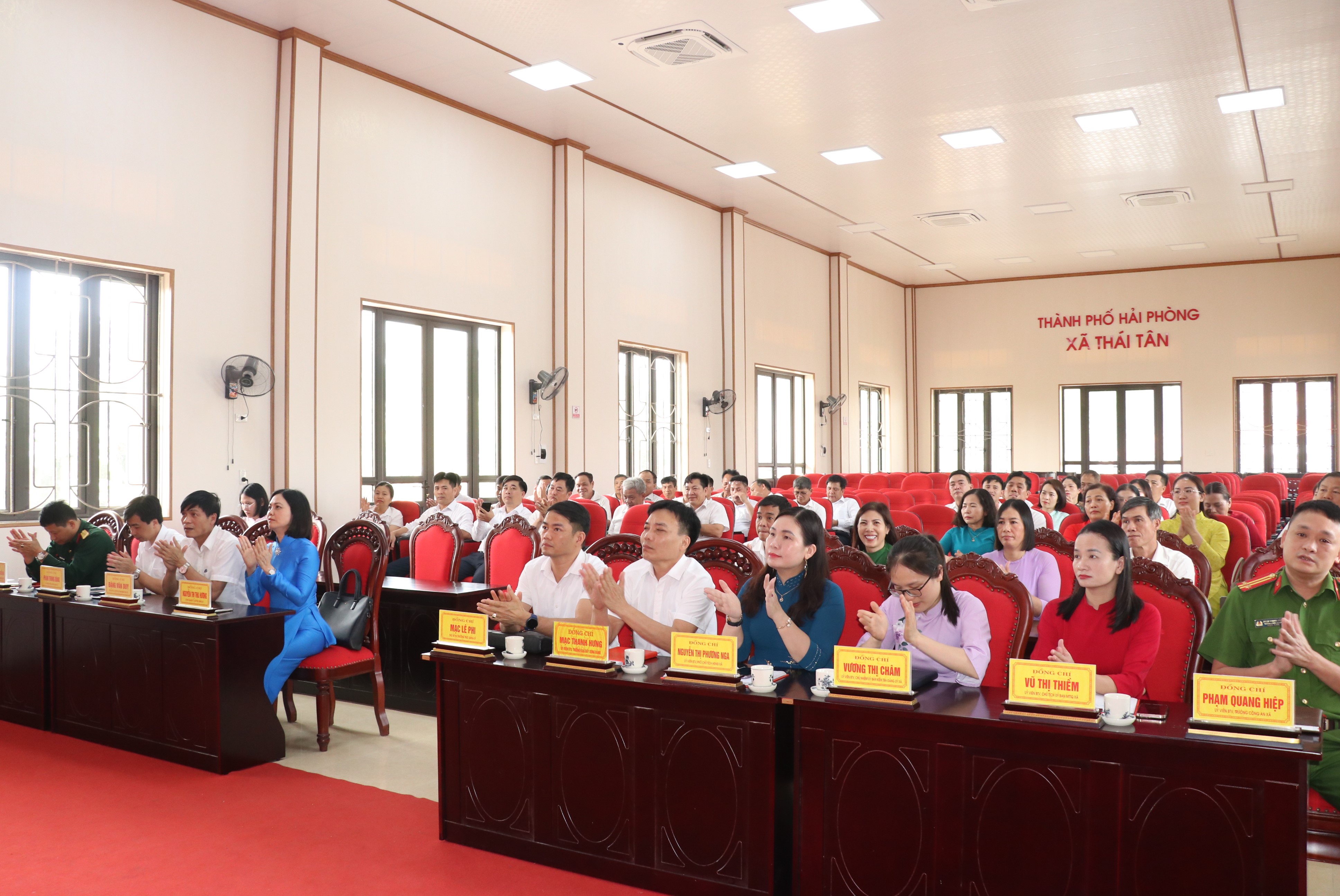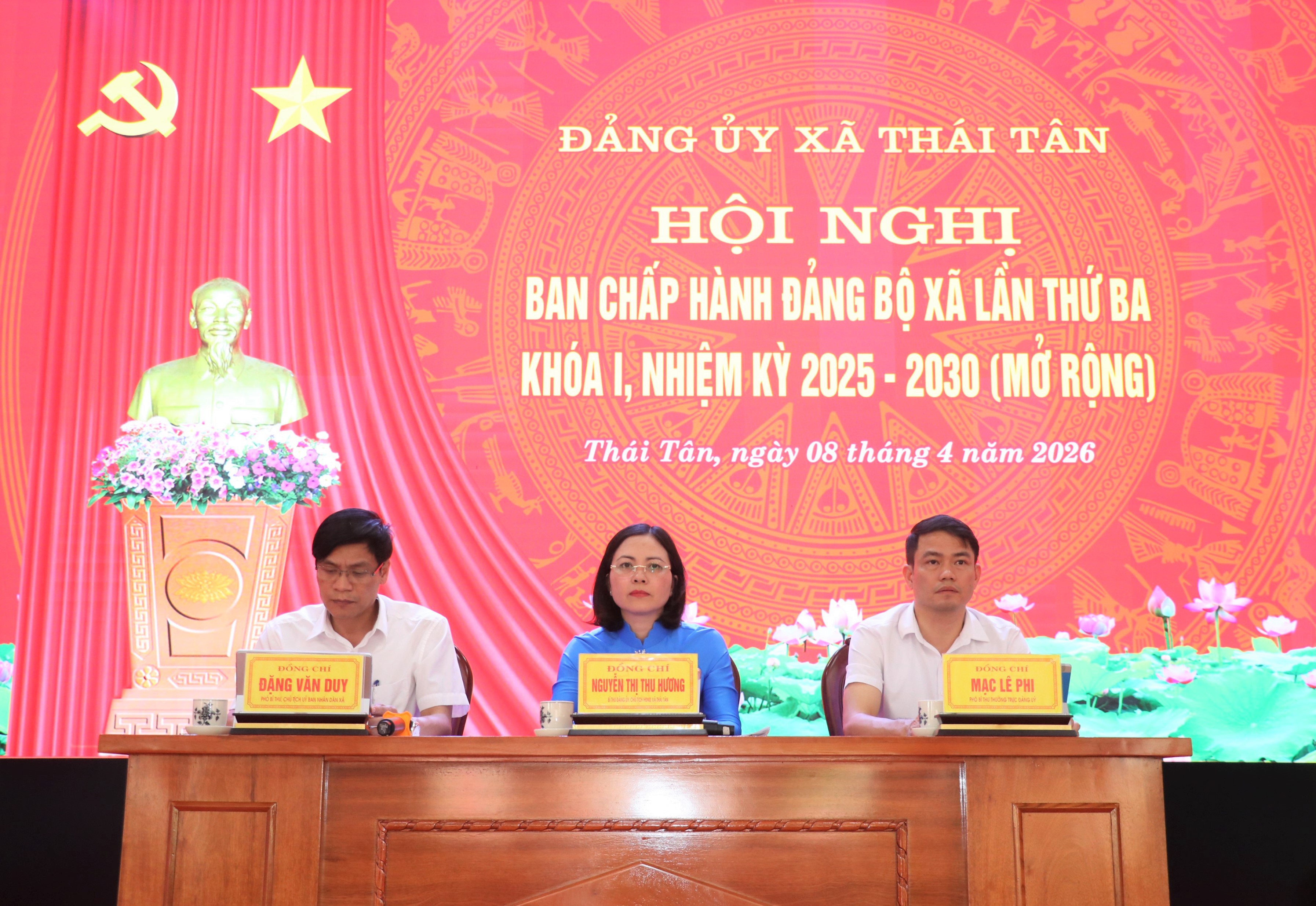 Các đồng chí: Nguyễn Thị Thu Hương – Bí thư Đảng ủy, Chủ tịch HĐND xã; Mạc Lê Phi – Phó Bí thư Thường trực Đảng ủy; Đặng Văn Duy – Phó Bí thư Đảng ủy, Chủ tịch UBND xã chủ trì hội nghị.