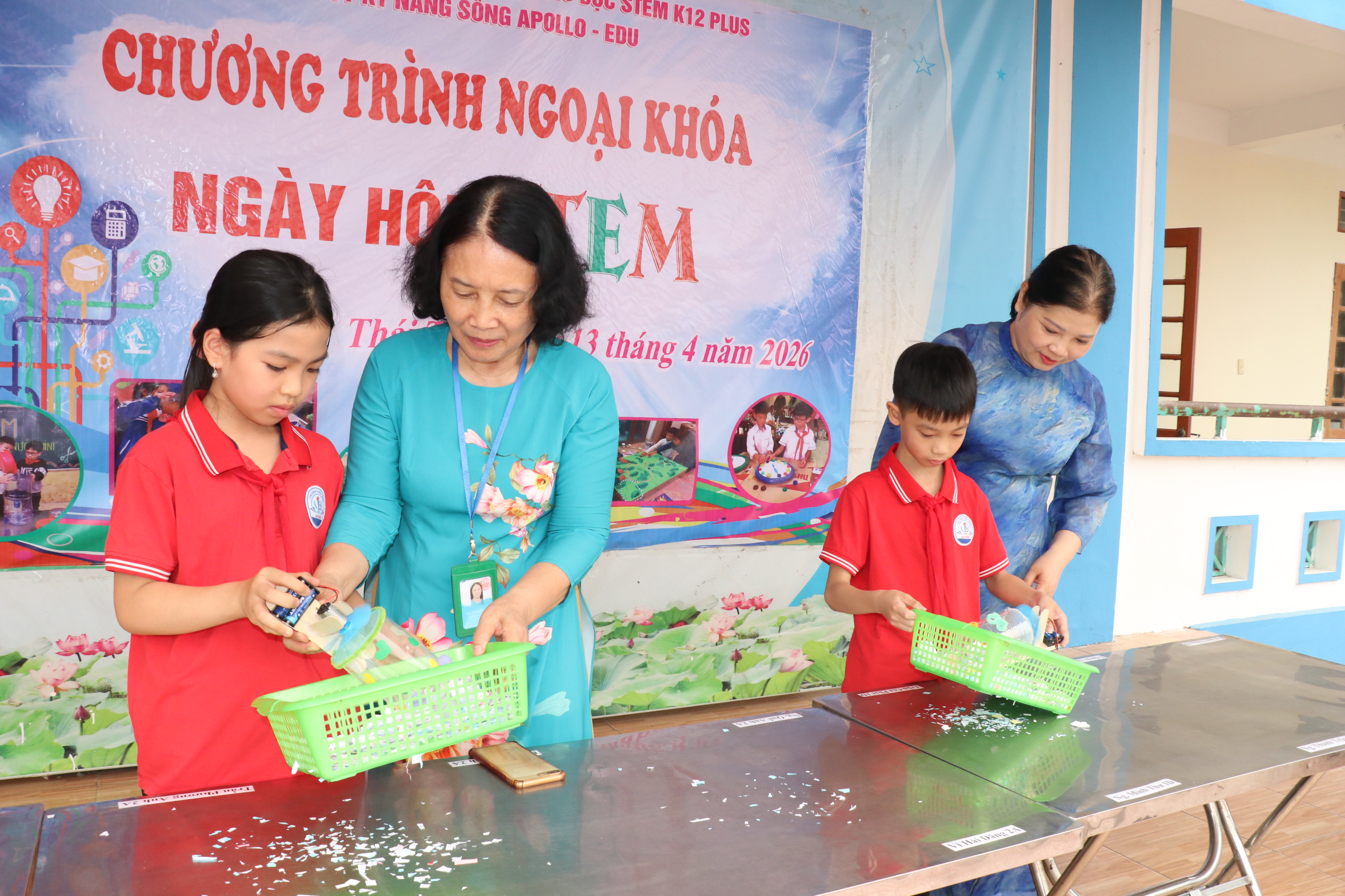Ngày 13/4/2026, Trường Tiểu học An Sơn phối hợp với Công ty Giáo dục Kỹ năng sống Apollo Edu tổ chức Ngày hội STEM với nhiều hoạt động phong phú, hấp dẫn, thu hút đông đảo cán bộ, giáo viên, phụ huynh và học sinh tham gia.