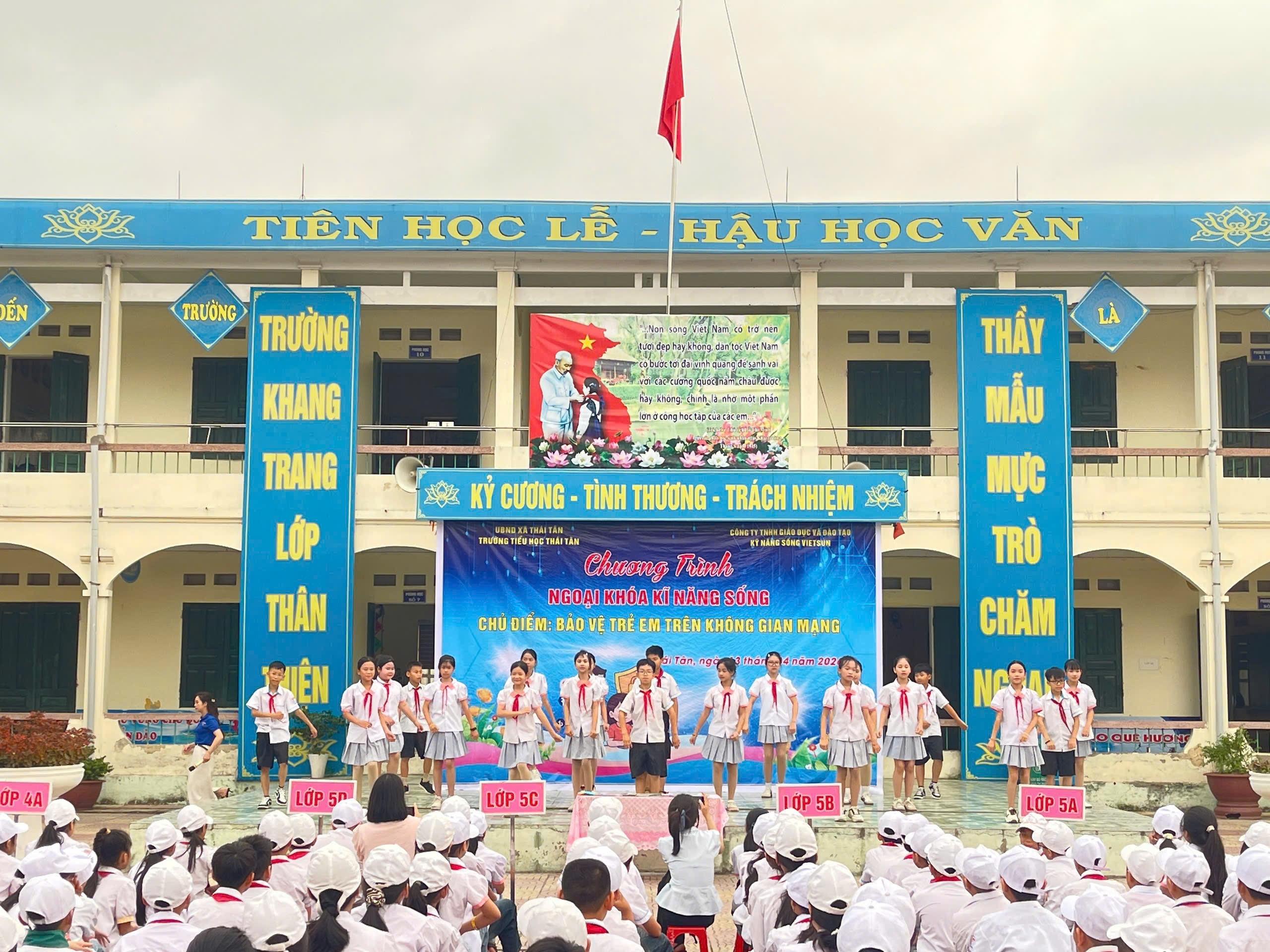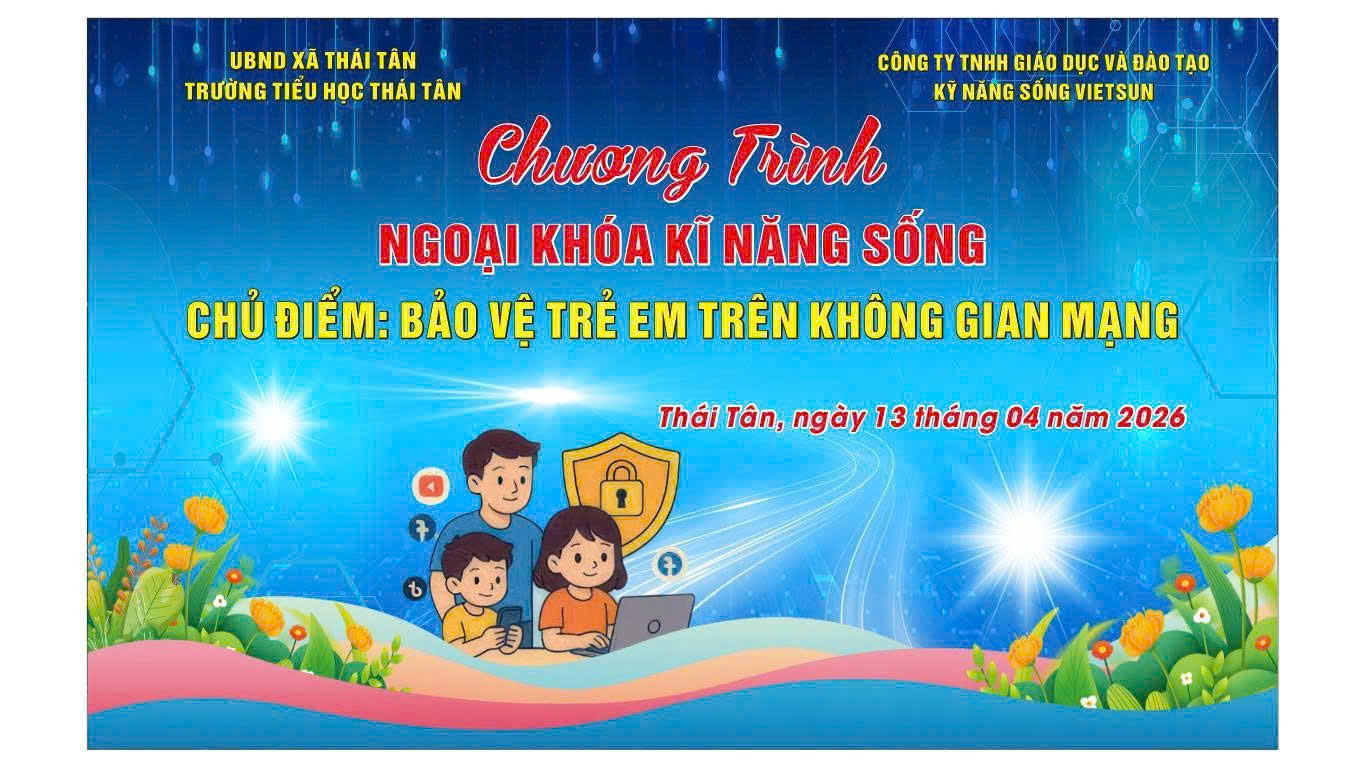 Sáng ngày 13/4, Trường Tiểu học Thái Tân phối hợp với Công ty Giáo dục Kỹ năng sống Vietsun tổ chức chương trình ngoại khóa với chủ đề “Bảo vệ trẻ em trên không gian mạng”, thu hút sự tham gia của đông đảo cán bộ, giáo viên và học sinh toàn trường.